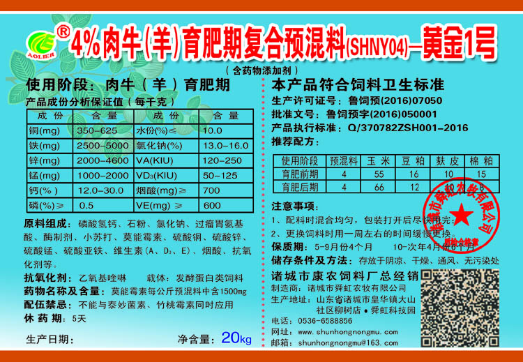 康農(nóng) 4%肉牛(羊)育肥期復(fù)合預(yù)混料-黃金1號